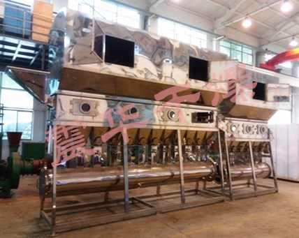 工作原理:潔凈的熱風(fēng)經(jīng)閥板分配進(jìn)入床體內(nèi),從加料器進(jìn)入的濕物料被熱風(fēng)形成流化狀態(tài),如煮沸的開(kāi)水在床體內(nèi)跳躍,故稱(chēng)為沸騰干燥器(或機(jī)),由于熱風(fēng)和物料廣泛接觸,因此在在較短時(shí)間內(nèi)就可干燥。從床體的一頭進(jìn)入,經(jīng)過(guò)幾分鐘至幾十分鐘時(shí)間的“沸騰”,自動(dòng)從床體的另一頭流出?! ?/span>