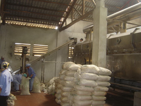 2010年2月我公司為越南河內(nèi)一客戶(hù)設(shè)計(jì)制作3噸/小時(shí)食鹽干燥線(xiàn)順利抵達(dá)越南河內(nèi)。在我公司的2工程師及客戶(hù)大力配合下,在二星期內(nèi)完成安裝調(diào)試。經(jīng)過(guò)使用,機(jī)器的產(chǎn)量等參數(shù)都達(dá)到客戶(hù)的要求。客戶(hù)將在今年年底繼續(xù)增加此干燥線(xiàn)去取代他們老式的干燥機(jī)器。